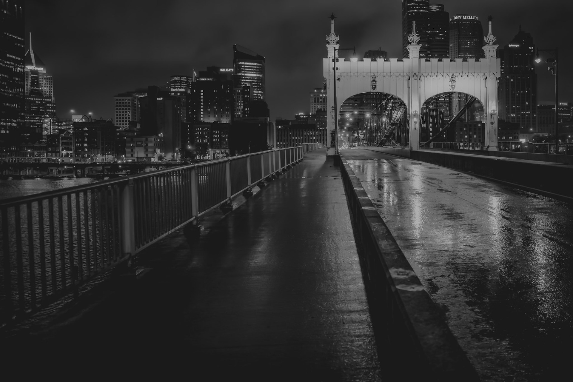 Smithfield Reflections: After a rain, the bridge becomes a mirror. Light spills onto the wet pavement, transforming a pedestrian path into a corridor of reflection.